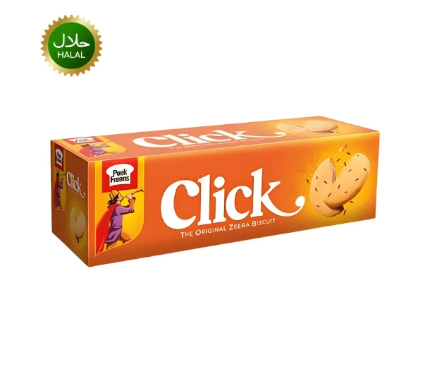 Peek Freans Click Original Jeera Biscuits – crunchy, flavorful biscuits with the perfect balance of cumin seeds and light sweetness. A classic teatime snack loved by all.
