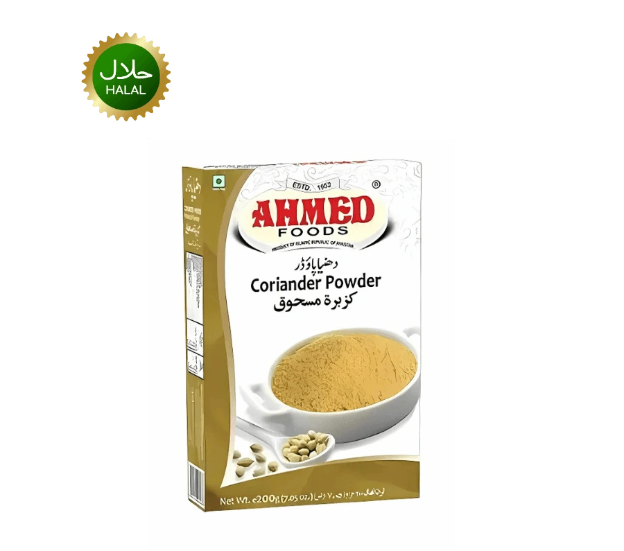 Bring freshness and aroma to your cooking with Ahmed Coriander Powder 200g — finely ground from premium quality coriander seeds.