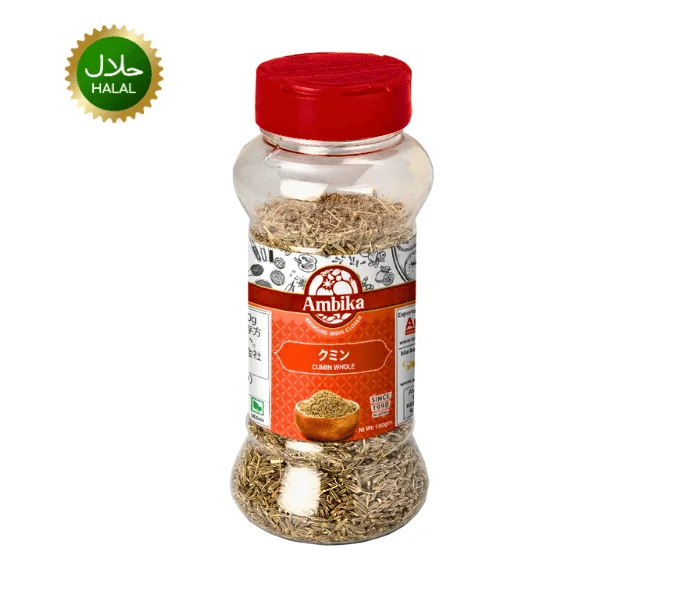 Enhance your cooking with Ambika Cumin Whole 100g, available at Aahalalfoods, known for its strong aroma and earthy flavor. Cumin seeds are an essential spice in Indian, Bangladeshi, and Middle Eastern cuisines, widely used in curries, rice dishes, breads, lentils, and spice blends.