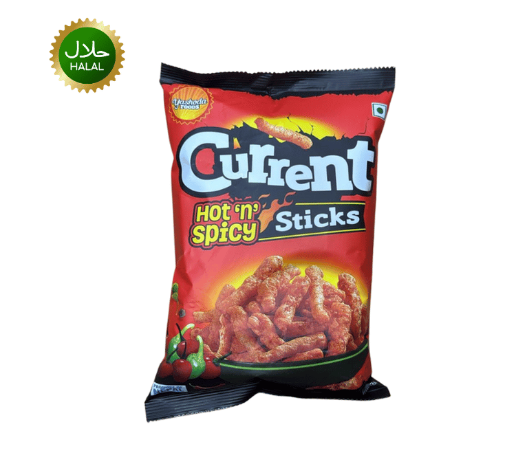 Current Sticks Hot ’n’ Spicy, crunchy potato sticks with bold flavor. Perfect for tea-time, parties, and everyday munching.