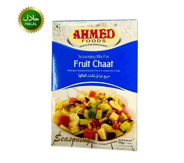 Ahmed Fruit Chaat Masala 50g – A tangy and aromatic spice blend that enhances the taste of fruit salads, snacks, and chaats instantly.