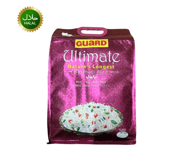Guard Ultimate Basmati Rice 5kg – premium quality extra-long grain rice with rich aroma, fluffy texture, and authentic taste. Perfect for biryani, pulao, and special occasions.