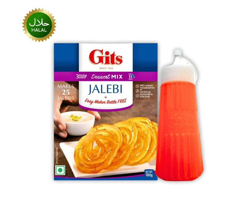 Make delicious, crispy, and juicy jalebis at home with Gits Jalebi Mix 100g. Quick, easy, and authentic Indian sweet preparation.