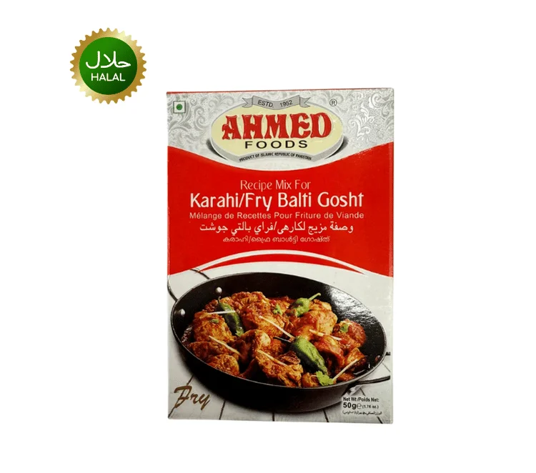 Prepare delicious, aromatic Karahi Gosht with ease using Ahmed Karahi Gosht Masala 50g. Specially crafted with a blend of premium spices, this mix ensures your mutton, beef, or chicken karahi turns out flavorful and authentic every time.