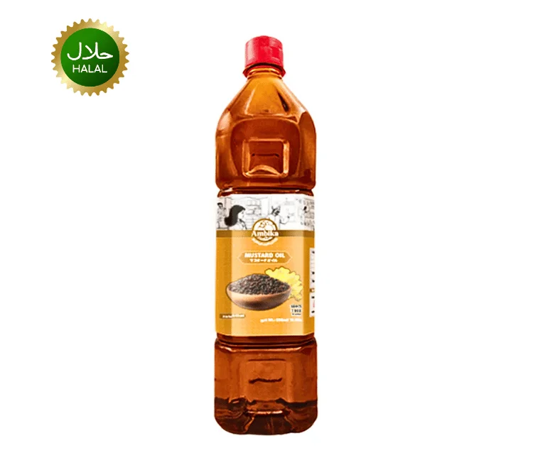 Pure Ambika Mustard Oil (500ml) – cold-pressed and rich in flavor, perfect for authentic South Asian cooking, frying, and pickling. Adds aroma, taste, and nutrition to your meals.