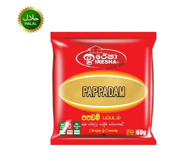 Enjoy the authentic taste of Sri Lankan Pappadam (60g) — light, crispy, and easy to fry. A perfect side dish or snack for any meal, made from premium-quality ingredients.