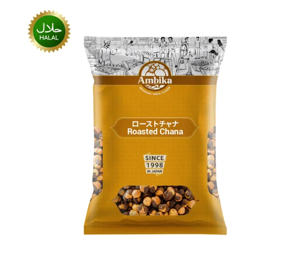 Ambika Roasted Chana 150g – a tasty and nutritious snack rich in protein and fiber. Perfect for guilt-free munching anytime.