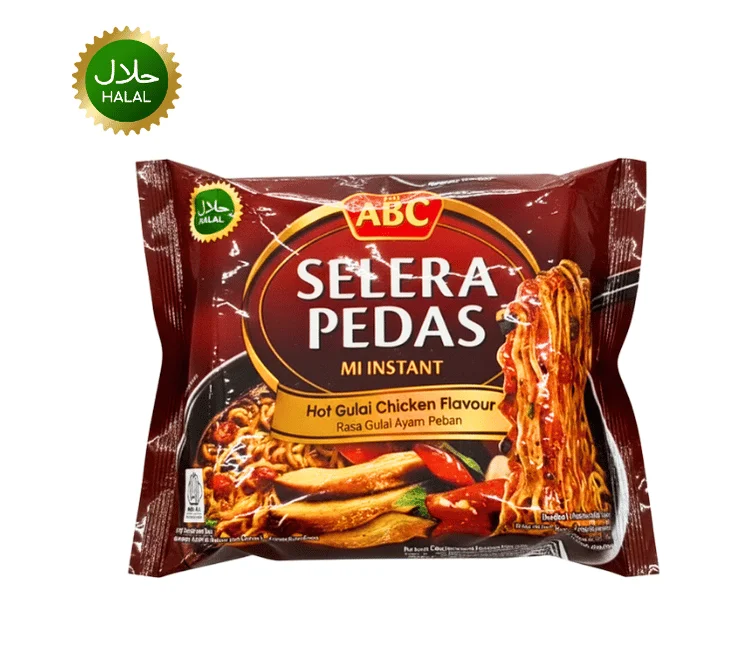 Enjoy the bold and spicy taste of ABC Selera Pedas Mi Instant (70g) – Hot Gulai Chicken Flavour. Authentic Indonesian noodles with rich, aromatic curry spice. Halal certified and ready in minutes!
