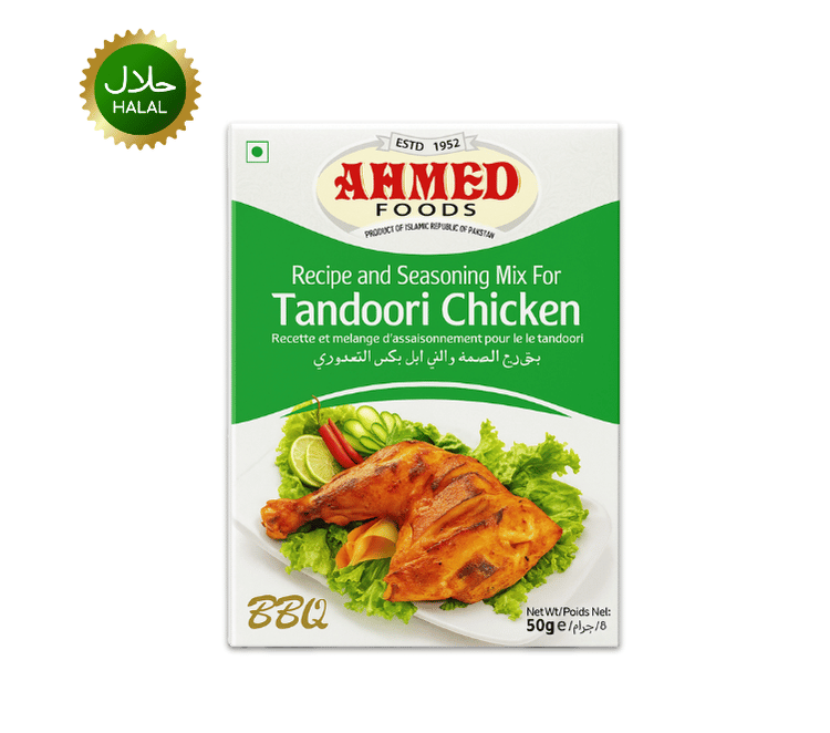 Ahmed Tandoori Chicken Masala 50g – a perfect blend of aromatic spices to create juicy, flavorful, and restaurant-style tandoori chicken at home.