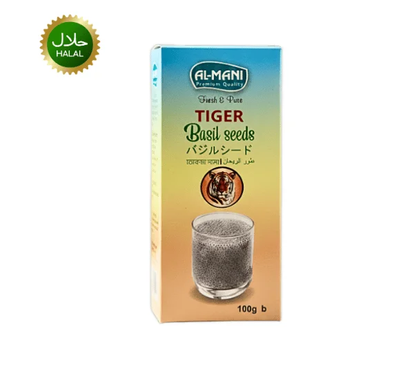 Shop Tokmadana / Basil Seeds 100g (Almani) from Aahalalfoods. Rich in fiber, cooling properties & antioxidants. Perfect for drinks, desserts & traditional recipes.